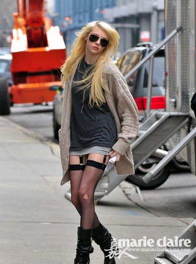 肉色丝袜搭配连衣裙,既性感又不失优雅。